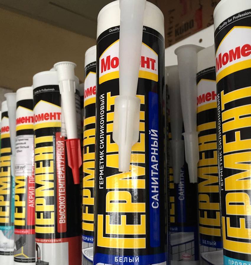 - «Момент Акрил Универсальный». Используется при трещинах в стенах, герметизация сантехники щелей в окнах, повреждение пола. Совместимы с маслами, кислотами, при идеальных условиях надежность обеспечит на несколько лет. Температурный режим, до +150.