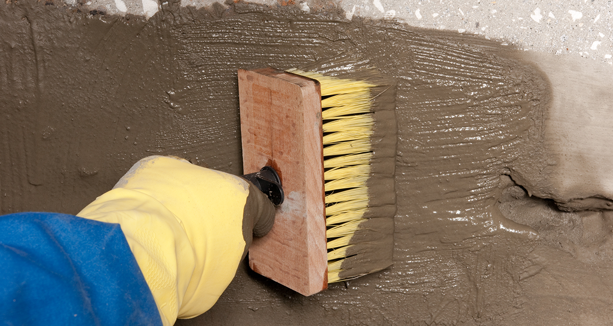 - обязательность сухой поверхности, на мокром бетоне не будет адгезии, т. е. мастика быстро отслоится;