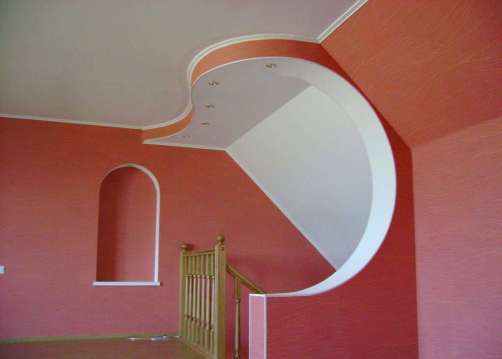 - Для формирования конструкций декоративно-полезного типа — арок, ниш, полочек, шкафчиков, многоуровневых потолков.