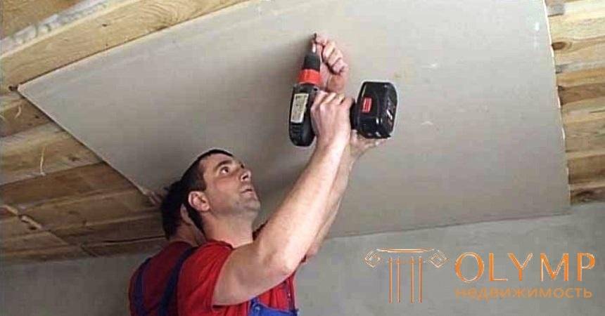 Фото крепления листов гипсокартона на потолок шурупами без каркаса.