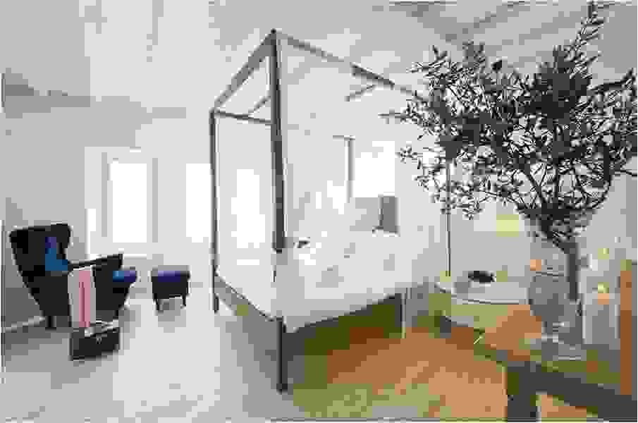 Кровать с балдахином является одной из визитных карточек греческого стиля