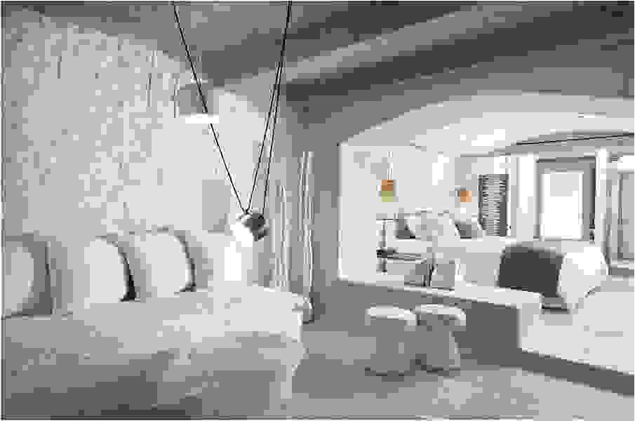 Фактурная стена — отличный способ визуально зонировать греческий интерьер