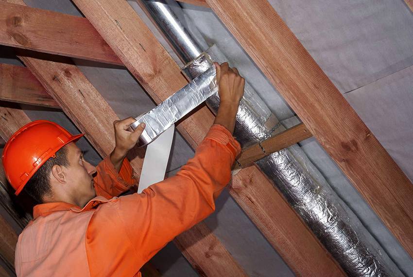 В места, где листы изолятора соприкасаются, требуется провести дополнительную работу – проклеить все участки, используя скотч ЛАМС. Особенность такого скотча заключается в том, что в его производстве применяется алюминий. Это поможет избежать проникновения влаги под покрытие.