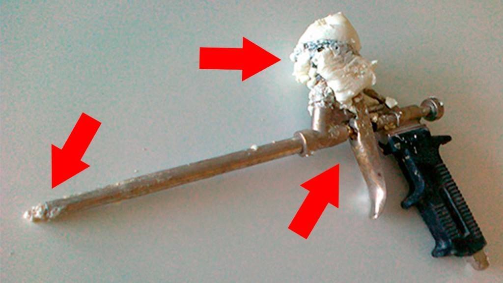После заливания пены во всех необходимые места в пистолете могут оставаться ее частички, которые вскоре засохнут. Чем раньше человек заметит ее следы, тем проще будет прочистить строительный прибор.