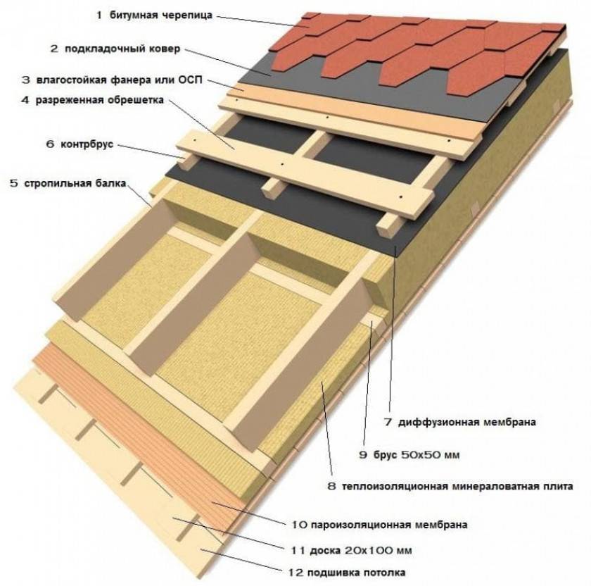 Кровельный неутепленный пирог состоит из нескольких слоев: