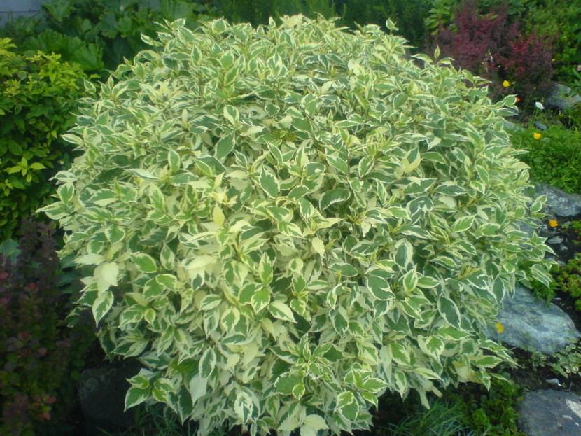 Создавайте контраст по цветам. На фоне темно-зеленой листвы, которой укутаны деревья, нужно сделать несколько штрихов яркого или пестрого цвета. Помогут в этом сорта кустов с крапчатыми, рябыми, пятнистыми или полосатыми листьями.