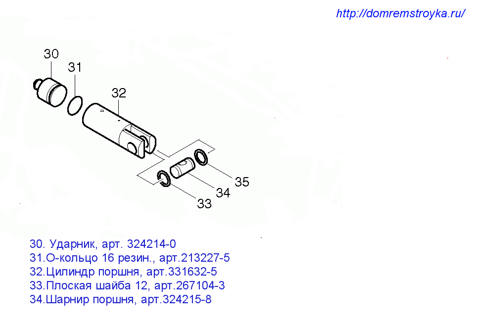 - 2. Выбивается шарнир поршня поз.34;