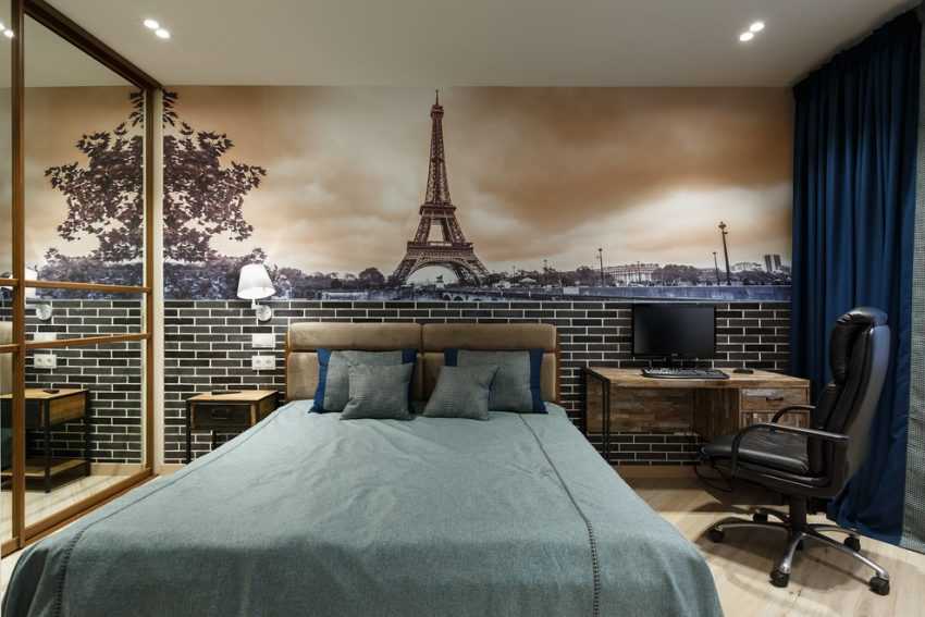 Дизайн спальни с фотообоями выглядит свежо и неизбито. Но такое декорирование стен имеет как преимущества, так и недостатки.