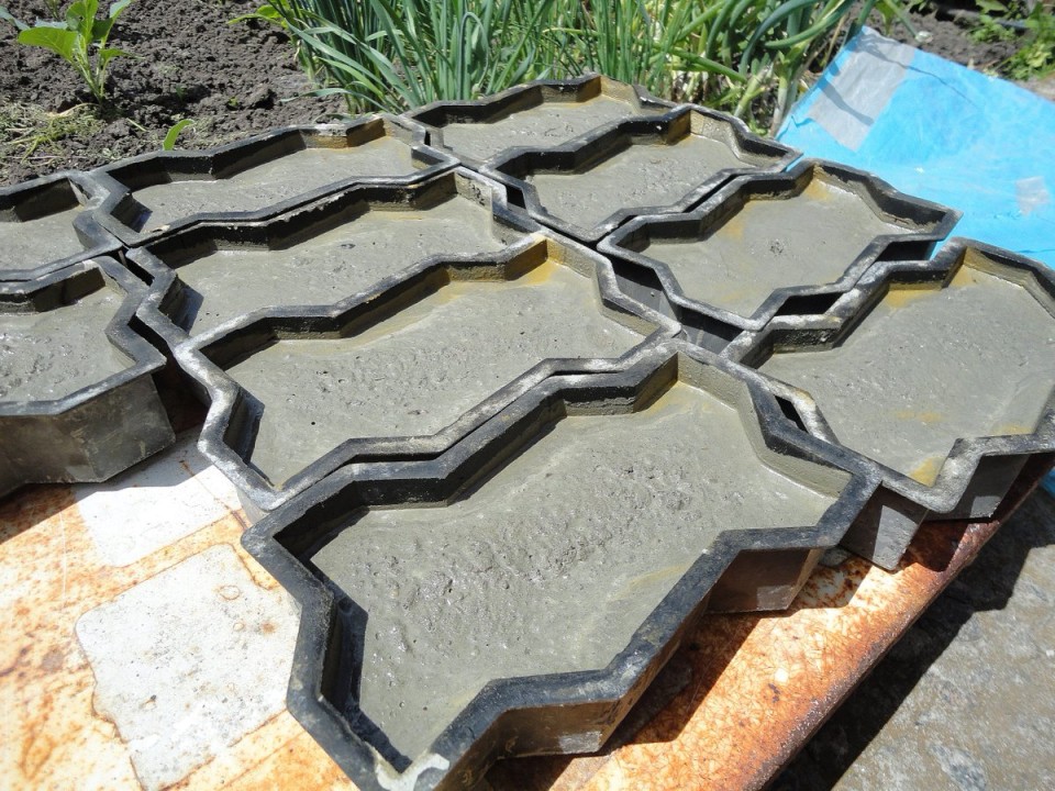 При строгом соблюдении пропорционального состава смеси и условий изготовления, деталь получается не хуже заводской. При этом есть возможность делать тротуарную плитку по своему образцу и замыслу.