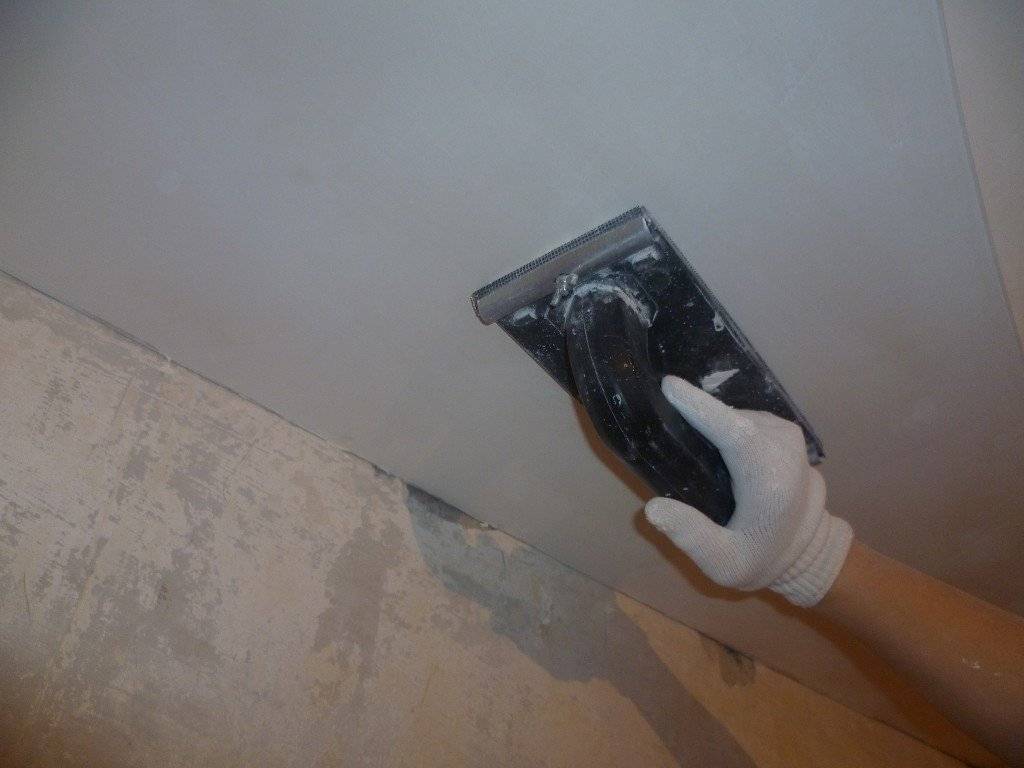 - С помощью маленького шпателя нужно заделать все места, как при заделывании стыков на гипсокартоне;