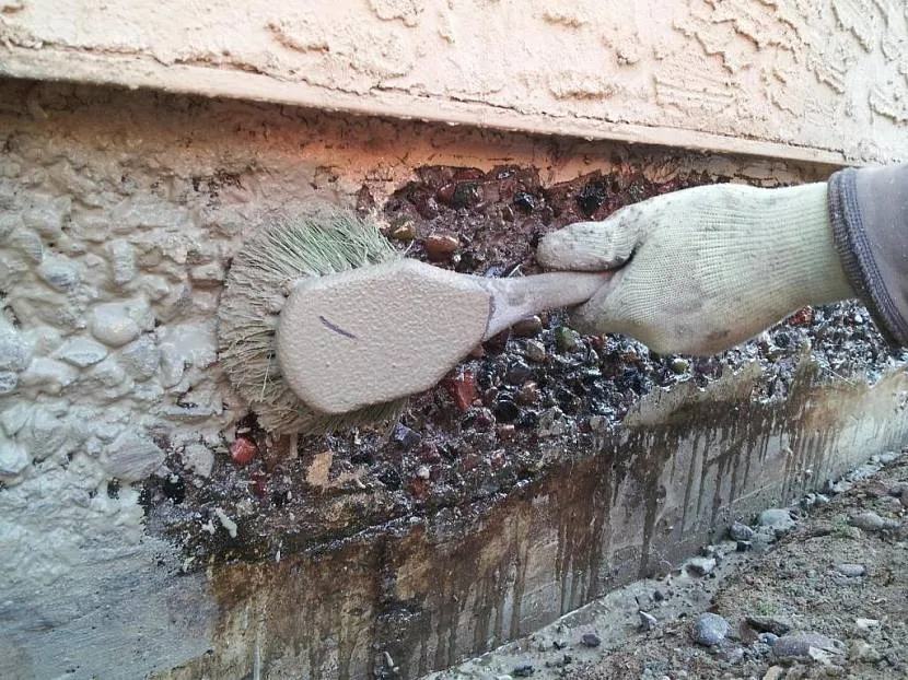 Готовить цоколь под штукатурку следует с особой тщательностью: отбить молотком выпуклые слои, пузыри, выковырять из стыков слабый раствор, оторвать отслоившееся. Убрать грязь и пыль, рекомендуется промыть жесткой щеткой.