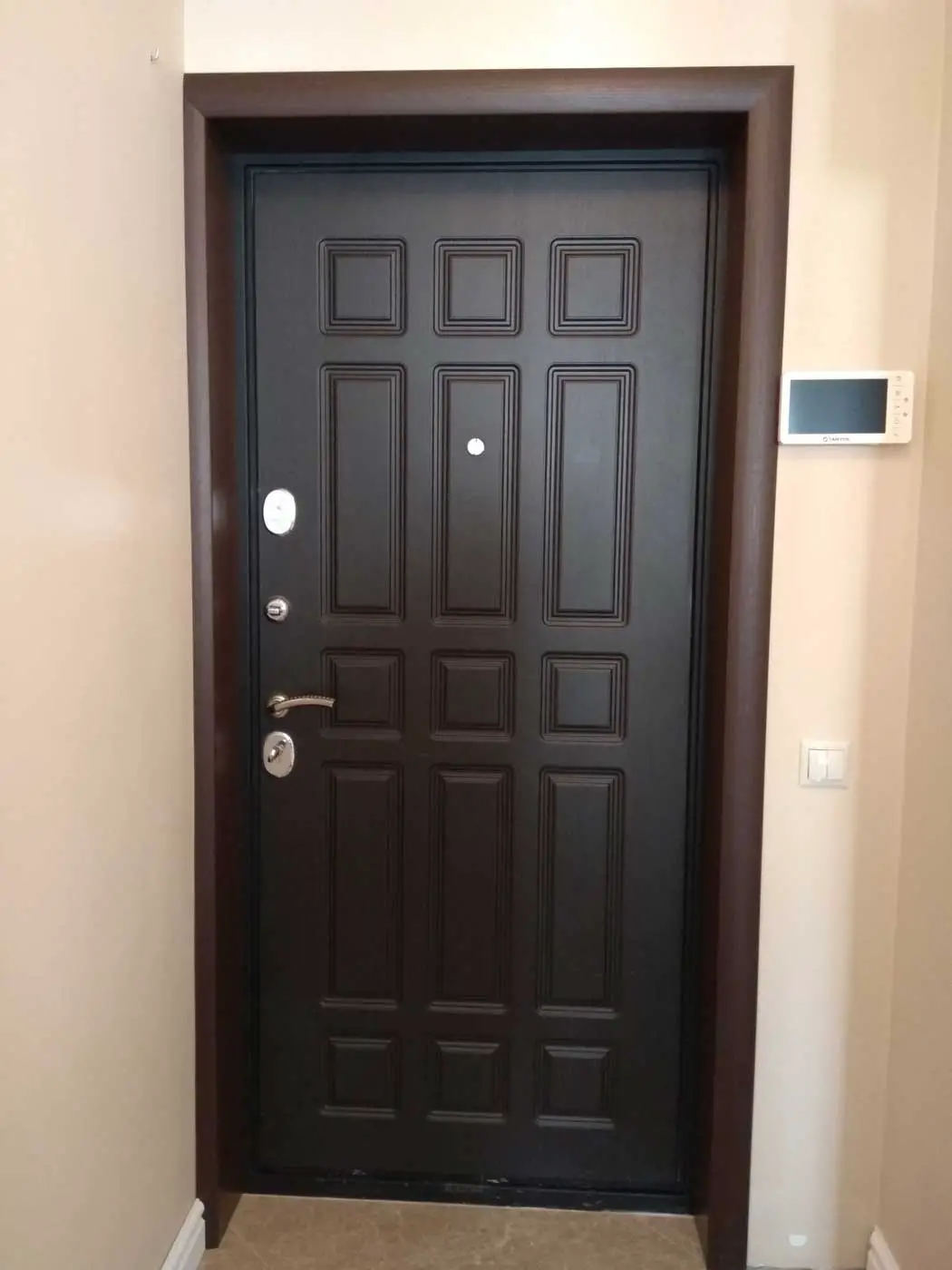 Отделка может имитировать различные натуральные материалы, поэтому вы в любом случае подберете для себя самый подходящий вариант вне зависимости от оформления двери и самой прихожей.
