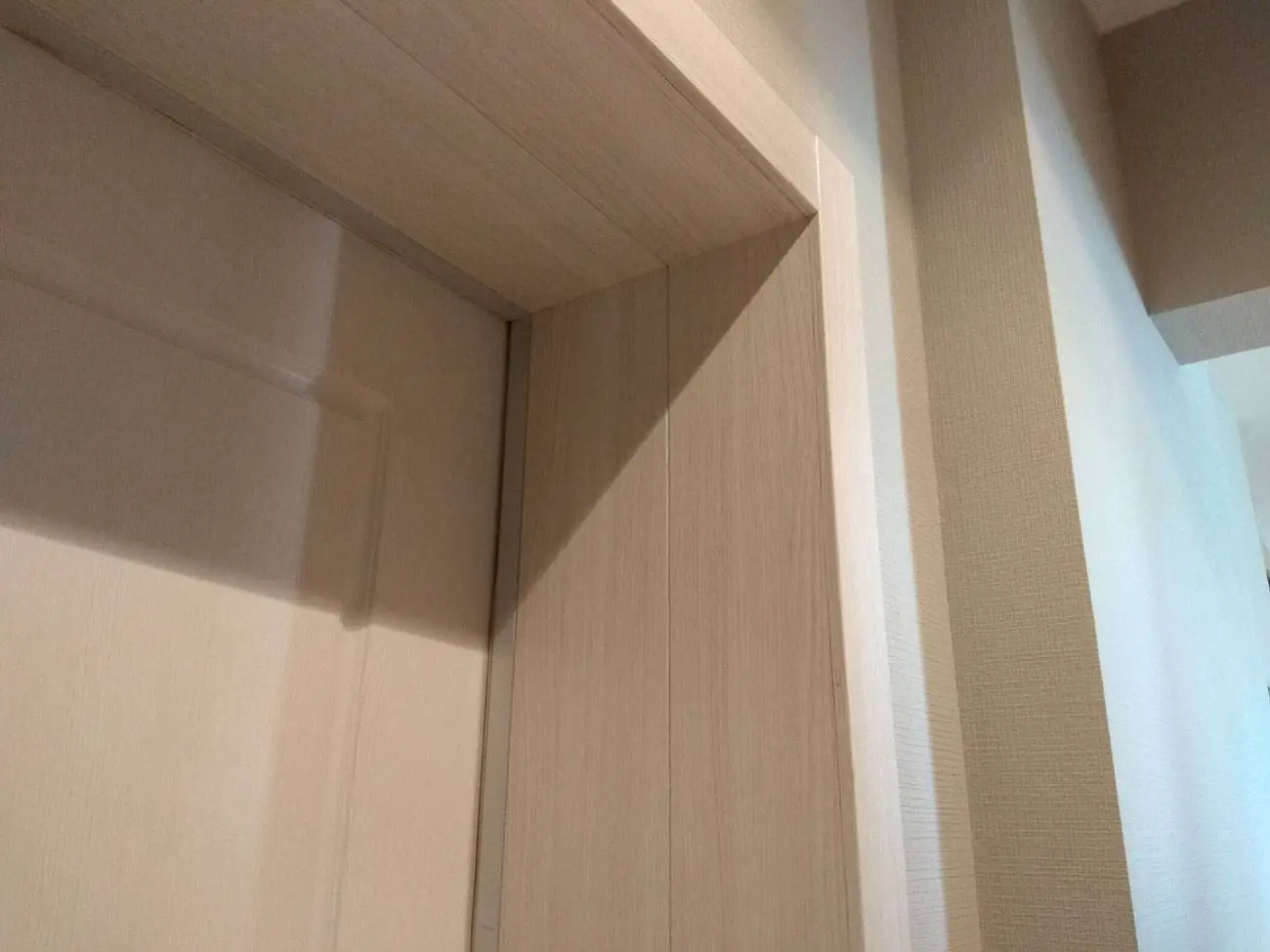 Отделка откосов межкомнатных дверей доборами из МДФ не относится к пыльным работам, поэтому ее лучше выполнять после финишных отделочных работ в комнатах, чтобы была возможность сразу установить наличники.