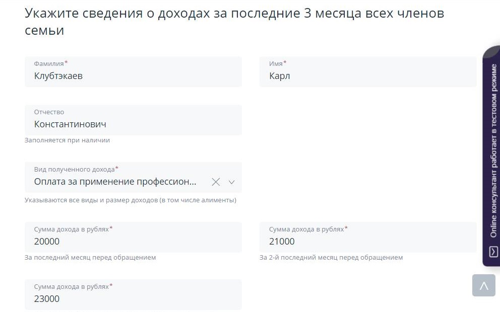 На третьей странице заполняете поля с вашими данными — из паспорта, ИНН и СНИЛСа. Вносите телефон для связи и адрес электронной почты. Именно на неё будут приходит оповещения о статусе вашей заявки (одобрение или отказ).