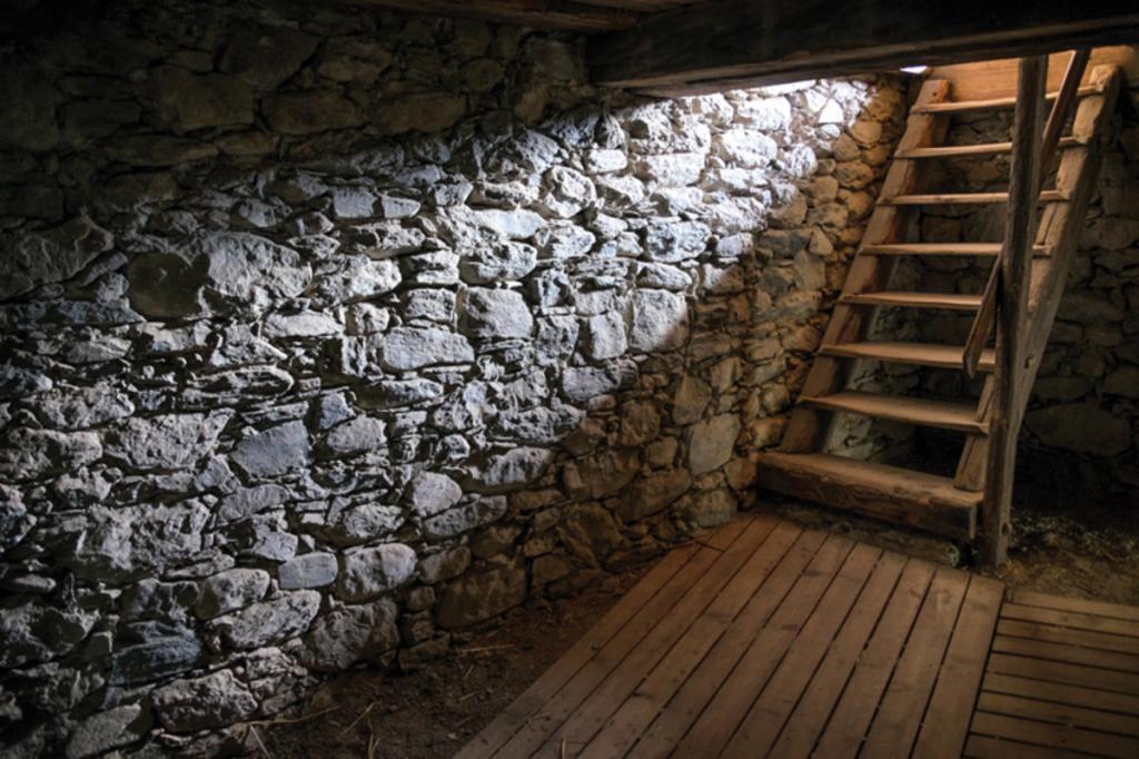 Основное помещение предваряет тамбур со ступенями. В очень холодном климате делается вторая дверь внизу (у основания лестницы), чтобы дополнительно защитить погреб от сквозняков. Иногда хранилище делят на несколько камер, создавая оптимальные условия для поддержания нужной температуры и влажности для разных продуктов. В маленьких хранилищах запасы расставляют по высоте: чем ниже полка, тем холоднее.
