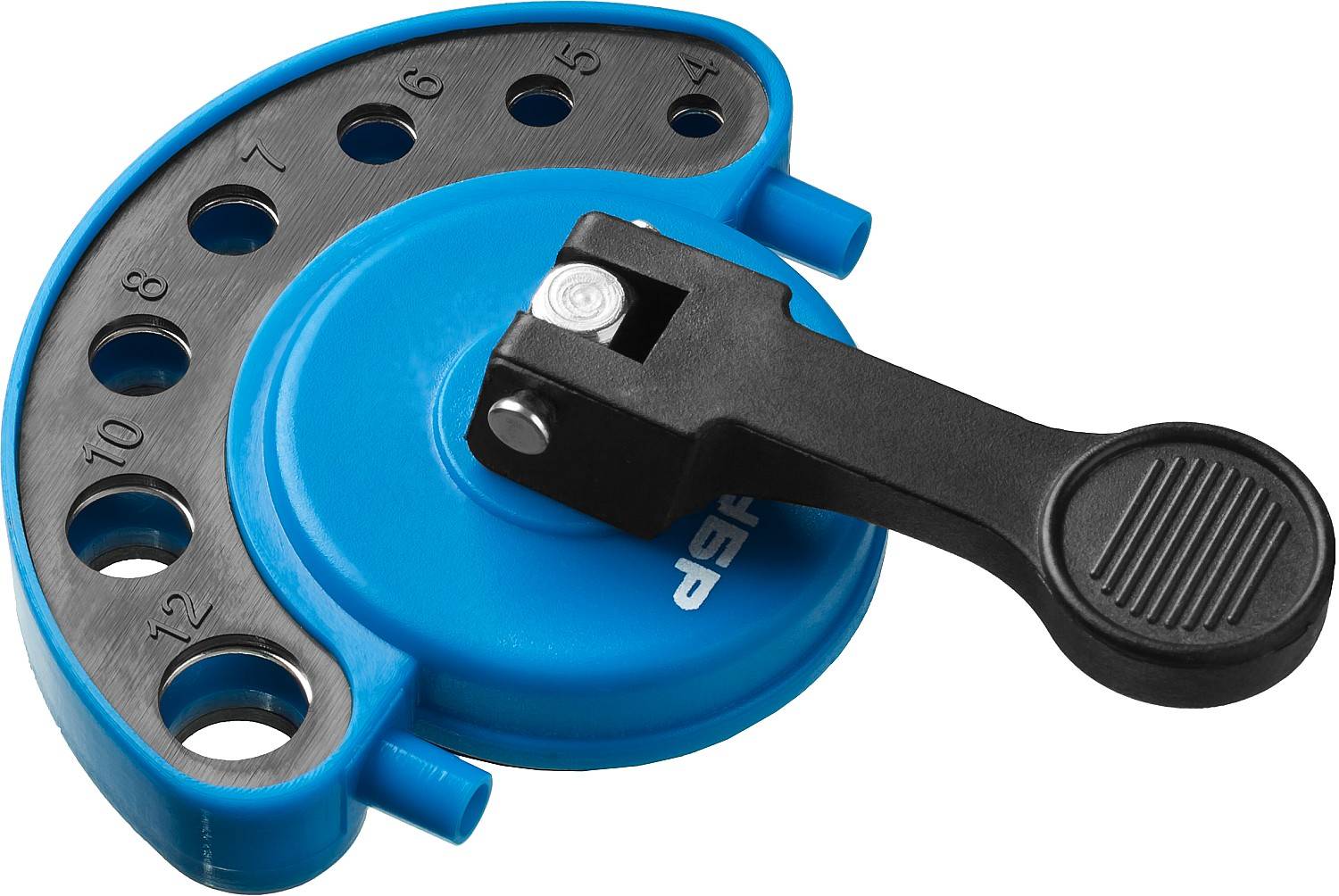 - Могут быть применены для отцентровки специальные приспособления – кондукторы. Иной раз их можно встретить в наборе со сверлами. Приспособление крепят к стене, используя присоску. Необходимо, чтобы отверстие нужного диаметра располагалось над намеченным центром.