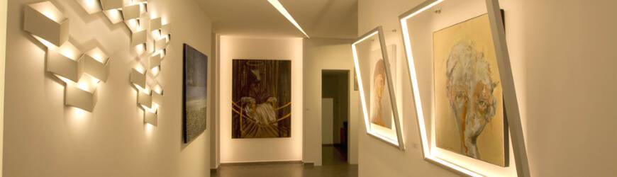 - Узкое пространство визуально расширяет последовательность одинаковых бра. Такие светильники должны быть достаточно компактными, чтобы не создавать неудобств. В просторной и широкой комнате можно располагать бра как на одной, так и на противоположных стенах.