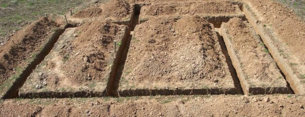 Перед началом строительства полностью удаляется растительный слой земли, а затем роются траншеи, глубина которых может доходить до 1 метра и более (расчет производится в зависимости от типа грунта). До начала последующих работ, подготовленные рвы укрываются, чтобы не допустить скапливания влаги от атмосферных осадков или от чрезмерного пересыхания почвы.