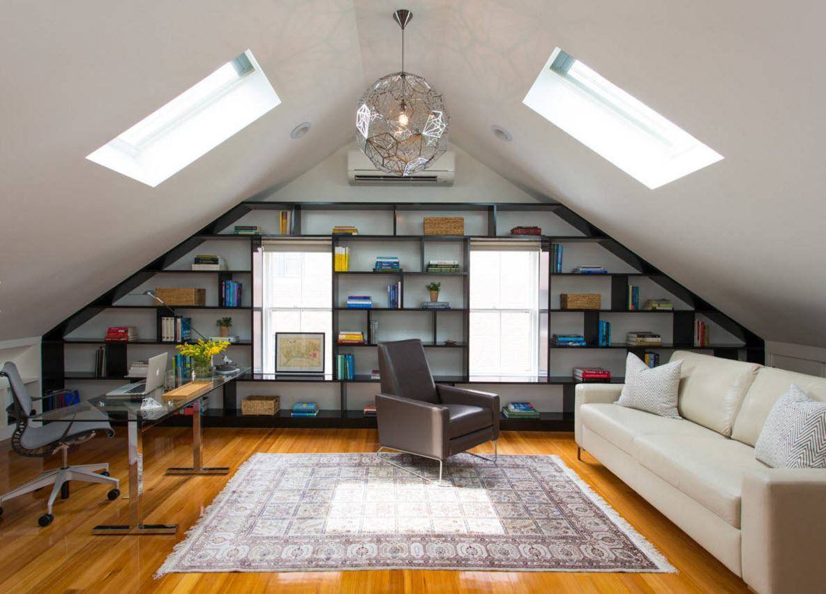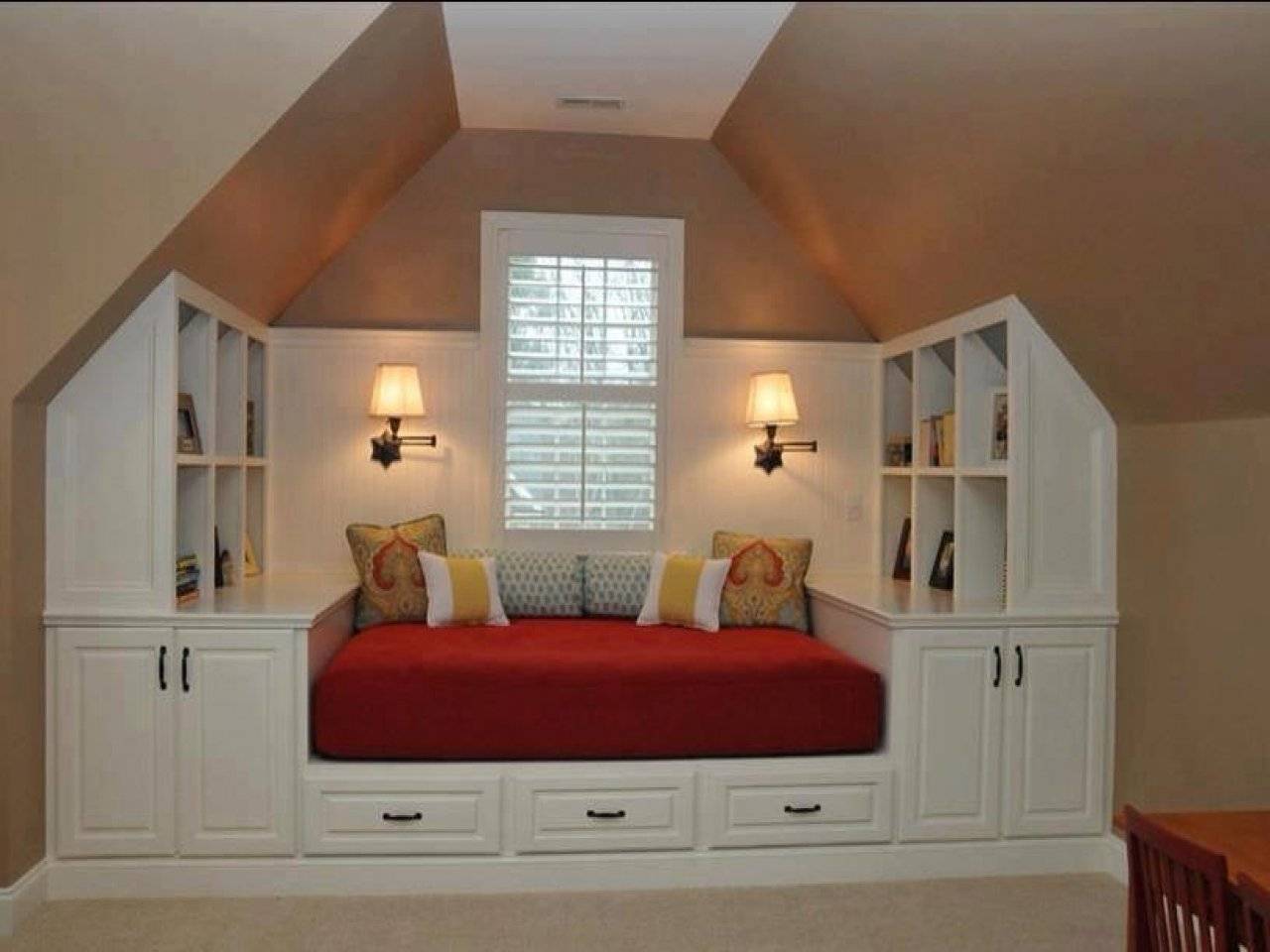 ![]() | В мансарде . Мансарда считается особым помещением. Скошенные боковые стены не позволяют установить там традиционную мебель и пространство вокруг окна, остается чуть ли не единственным местом, в которое отлично вписывается самодельный шкаф. |