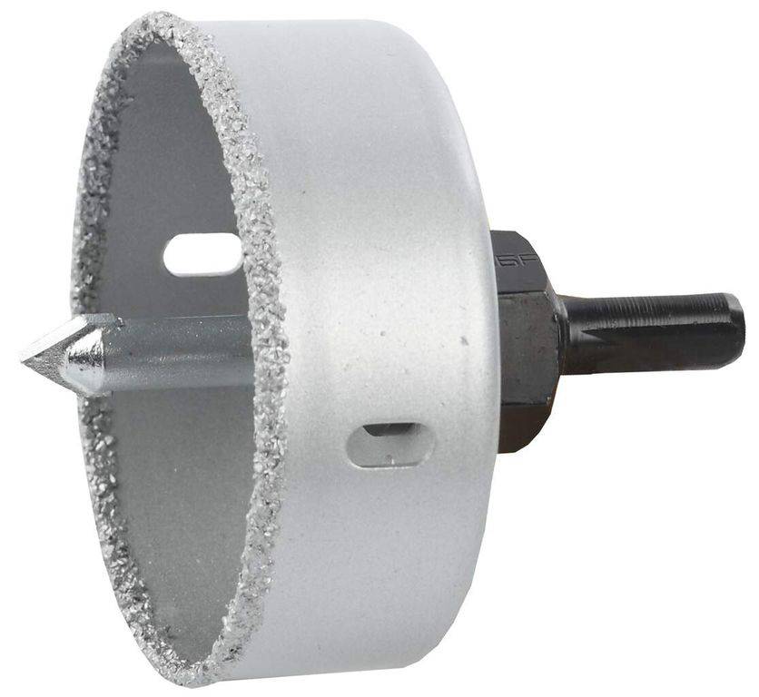 Коронка с напылением из технических алмазов прорезает исключительно ровные отверстия и не требует приложения больших усилий.