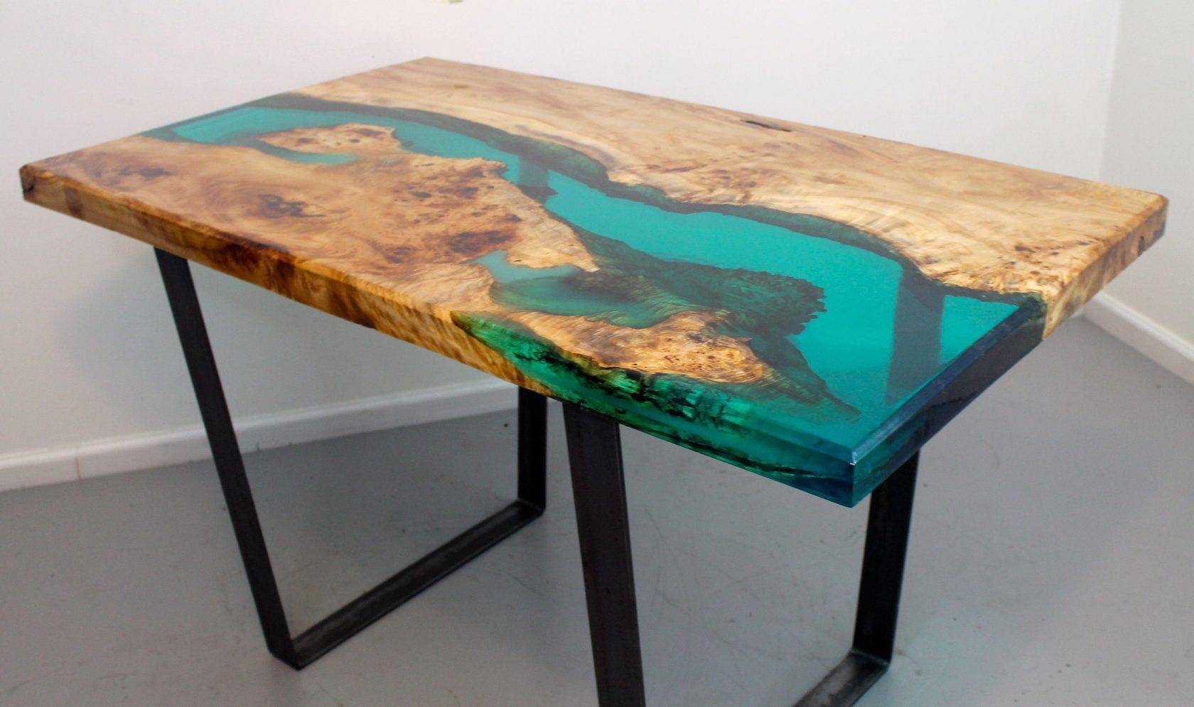 Также смастерить конструкцию можно со стеклянной столешницей. Этот материал устойчив к износу, делает мебель оригинальной и легкой. Однако на стекле постоянно остаются следы, поэтому его приходится часто мыть и полировать.