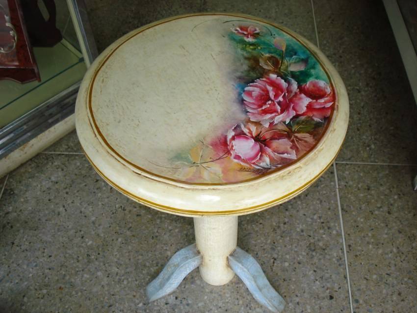 Если вы хотите украсить стол своими руками каким-либо рисунком, то воспользуйтесь наждачной бумагой. Она очень хорошо осветлит определенные места, тем самым выражая ваш рисунок.