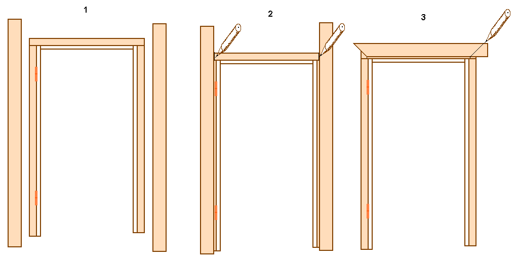 Таким образом стыкуются вертикальная и горизонтальная части коробки двери.