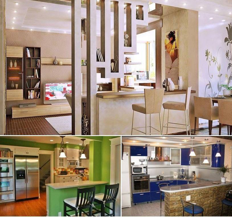 В квартирах, где кухня и гостиная объединены, такая стойка может стать незаменимым элементам обустройства и зонирования. Обычно более низкую сторону устанавливают со стороны кухни, а высокую — со стороны гостиной.