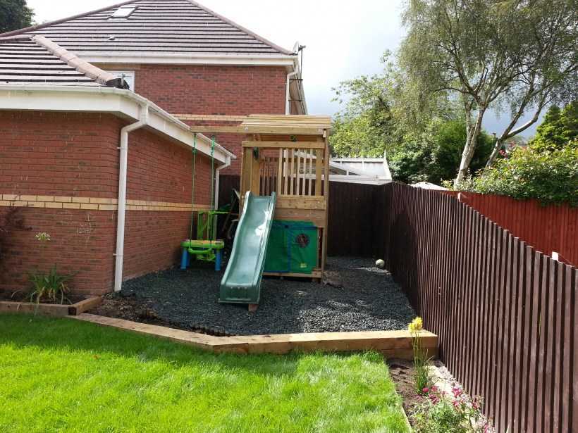 Компактно размещенная вдоль забора, детская площадка для мальчиков