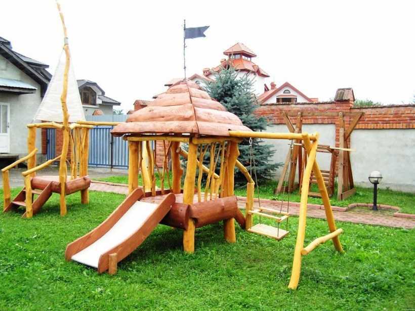 Из древесины изготавливают в основном детские спортивные комплексы, которые состоят из домиков, башенок, лестниц, горок и так далее.