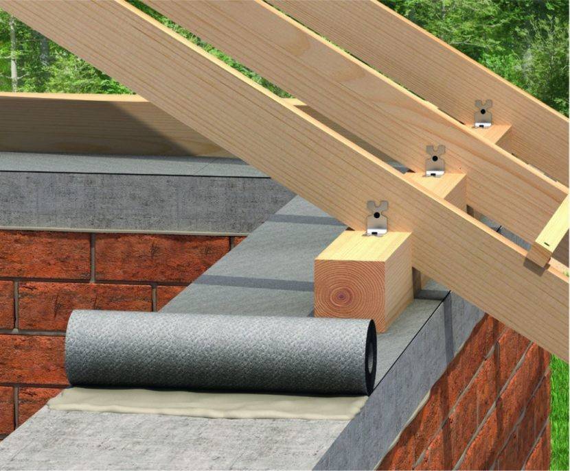Для большей сохранности мауэрлата и долгого срока его службы, между ним и стеной прокладывают слой гидроизоляции, в качестве которого чаще всего выступает рубероид. В зависимости от материала, из которого возводится дом, монтаж мауэрлата выполняется различными методами.