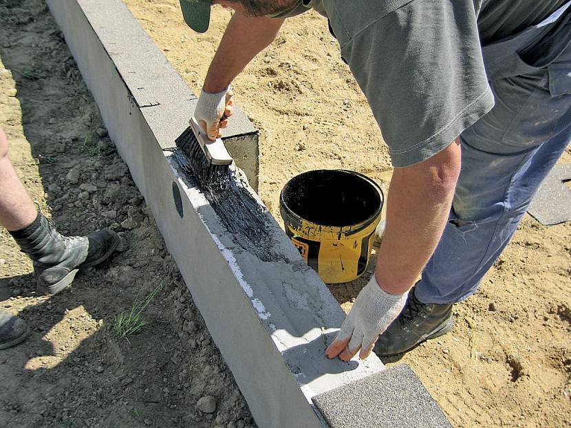 - Спустя пять дней после заливки, Вам нужно начать обустройство гидроизоляции ленточного фундамента для деревянного дома.