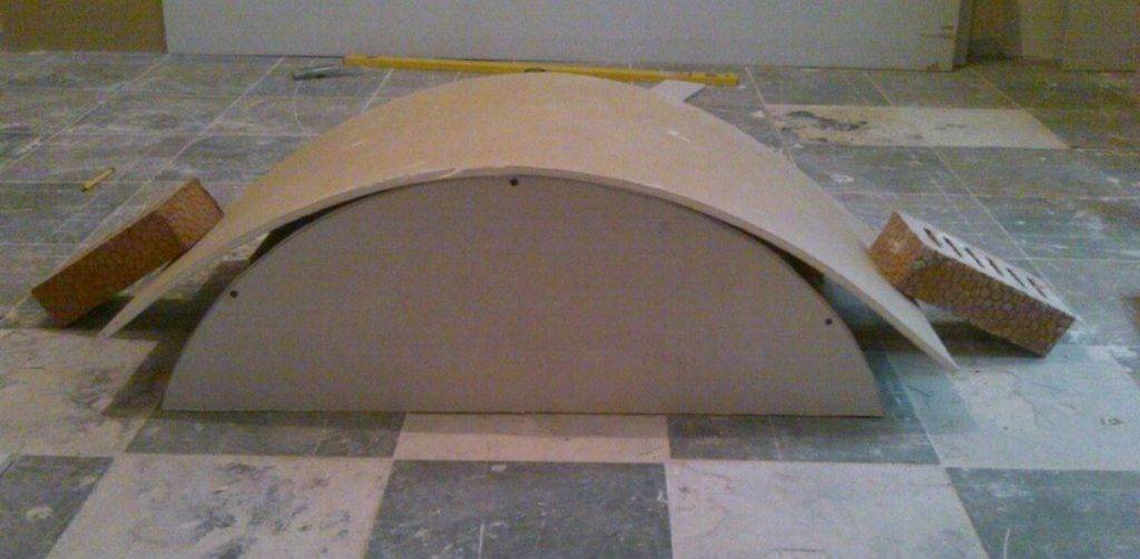 Совет! При сгибании обращайтесь с гипсокартоном аккуратно, иначе он сломается. Если это произошло, можно укрепить отдельные части, но трещины придётся заделать шпатлёвкой.