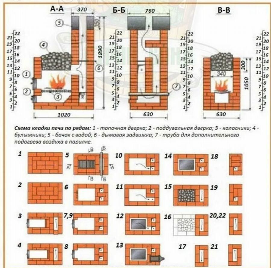 12 чертежей – кирпичная печь для бани