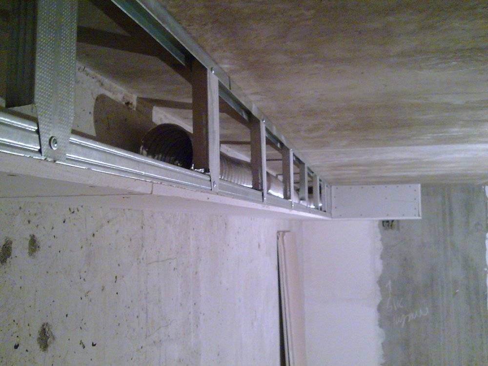 Перед зашивкой конструкции короба листами гипсокартона необходимо убедиться, что проложены все необходимые коммуникации и выполнена разводка для подключения осветительных приборов.