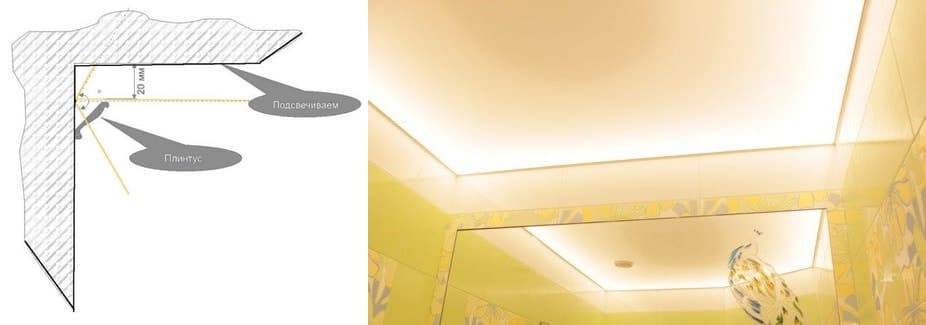 Подсветка потолка лентой