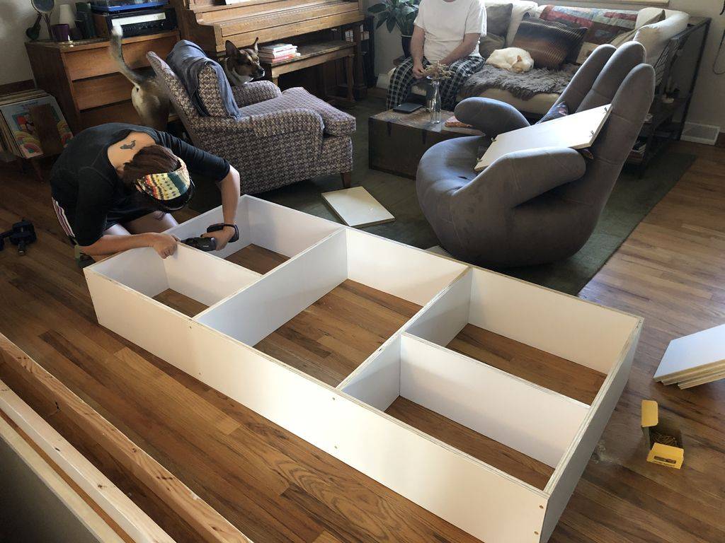 Когда у вас получится собрать контур полки, можно приступить к сборке самой полки-короба.