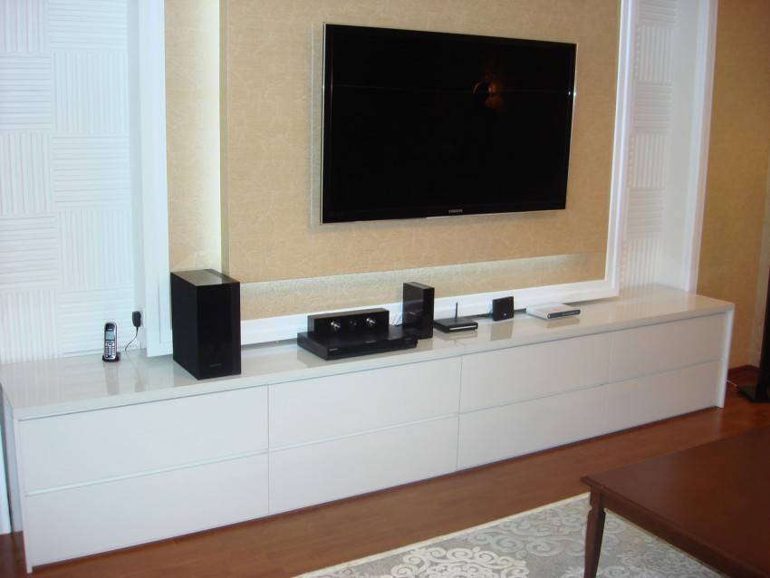 Тумбы под телевизор могут наполняться следующими элементами: