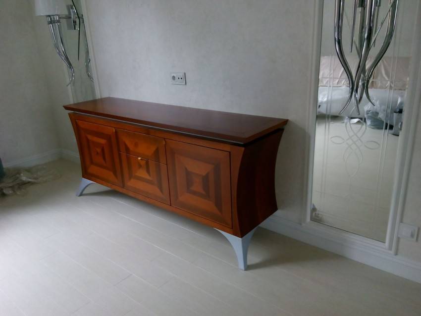 Чтобы тумба, сделанная собственноручно, отлично вписалась в общий интерьер помещения, ее следует инкрустировать с учетом общей стилистической направленности: