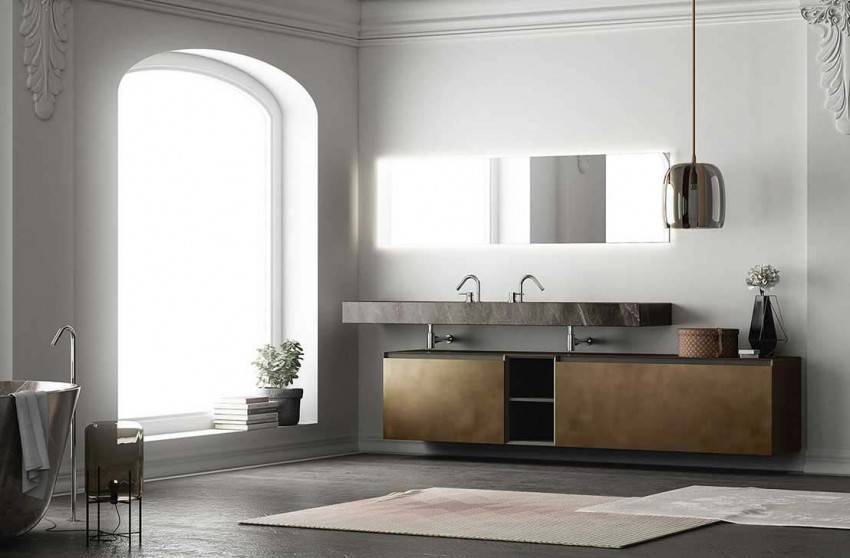 Отдельное внимание уделяется высоте ножек. Тумбы на высоких опорах сочетаются с ретро, эклектикой или восточными стилями