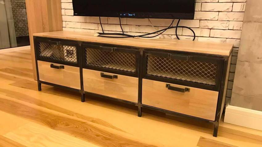 Современные тумбочки для телевизора имеют сложную конструкцию, поэтому и вам следует использовать подобные решения. Не стоит отдавать предпочтение глухим моделям с несколькими выдвижными ящиками. Не пренебрегайте стеклом и металлом, которые помогут сделать внешний вид изделия красивым.