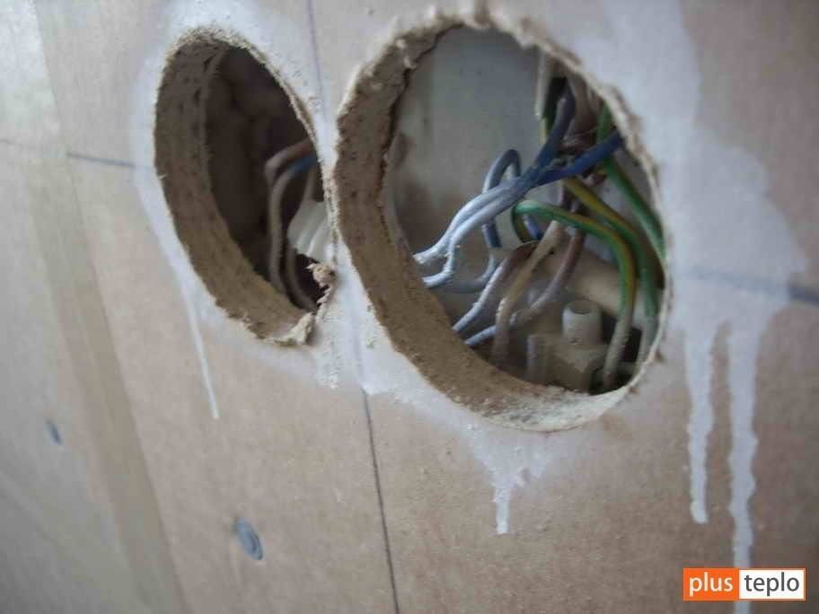 Подрозеточные коробки выносятся на гипсокартон и звукоизолируются негорючим материалом