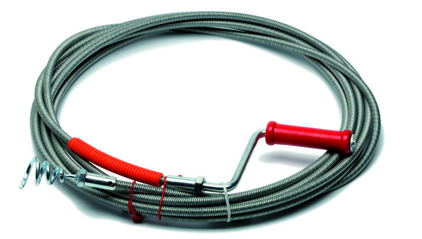 Профессиональный трос – наиболее действенное приспособление в борьбе с засорами. Оно представляет собой металлический тросик (диаметром от 6 до 16 мм, для домашнего использования достаточно 6-8 мм) с ручкой на одной стороне и заостренным концом на другой.