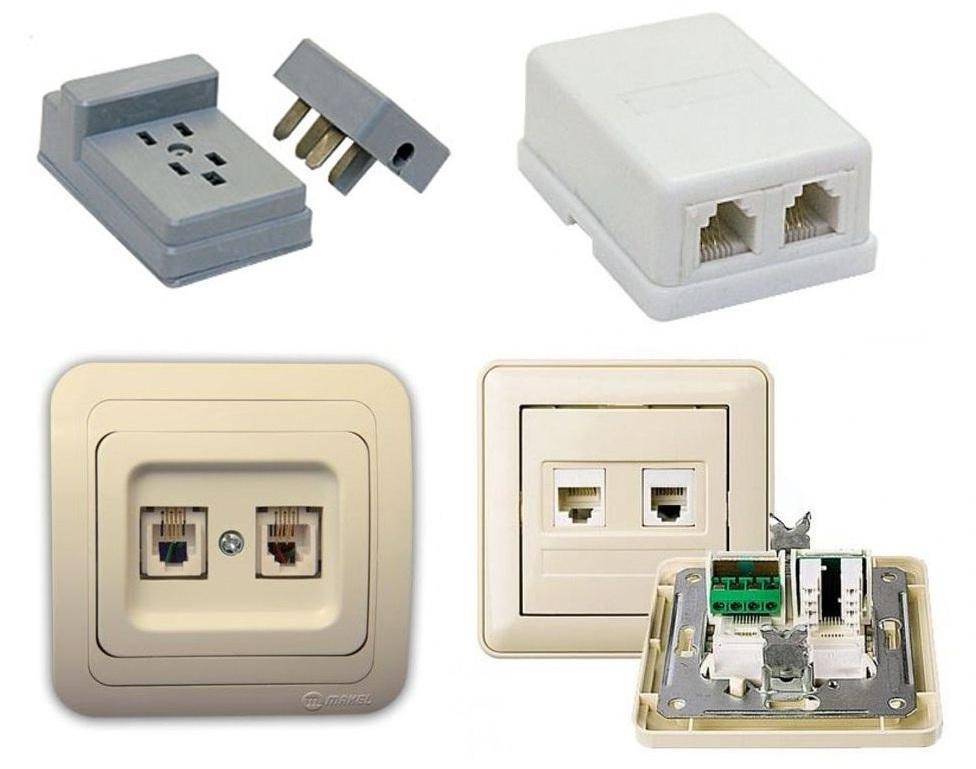 Она позволяет присоединить к линии как старое, так и современное телефонное оборудование. Розетки с разъемами RJ существуют в большом ассортименте моделей. В них может быть различное сочетание количества соединителей, а также их назначения. Некоторые из этих соединителей показаны ниже.