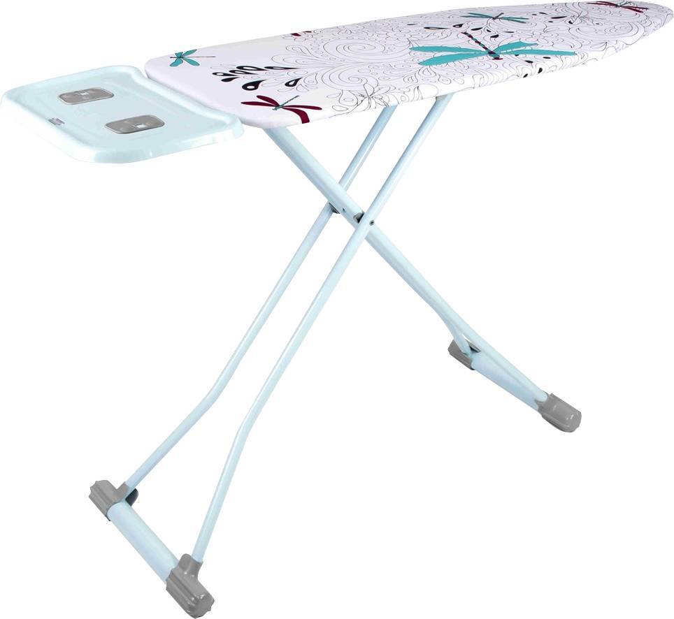 LРазмер столешницы равен 120×38 см. Поверхность покрыта чехлом из хлопка и полиэстера. Состав оптимален для легкой глажки, хорошо пропускает пар. В конструкции предусмотрена удобная и безопасная система регулировки высоты и складывания. На подставке легко поместится даже большой парогенератор.
