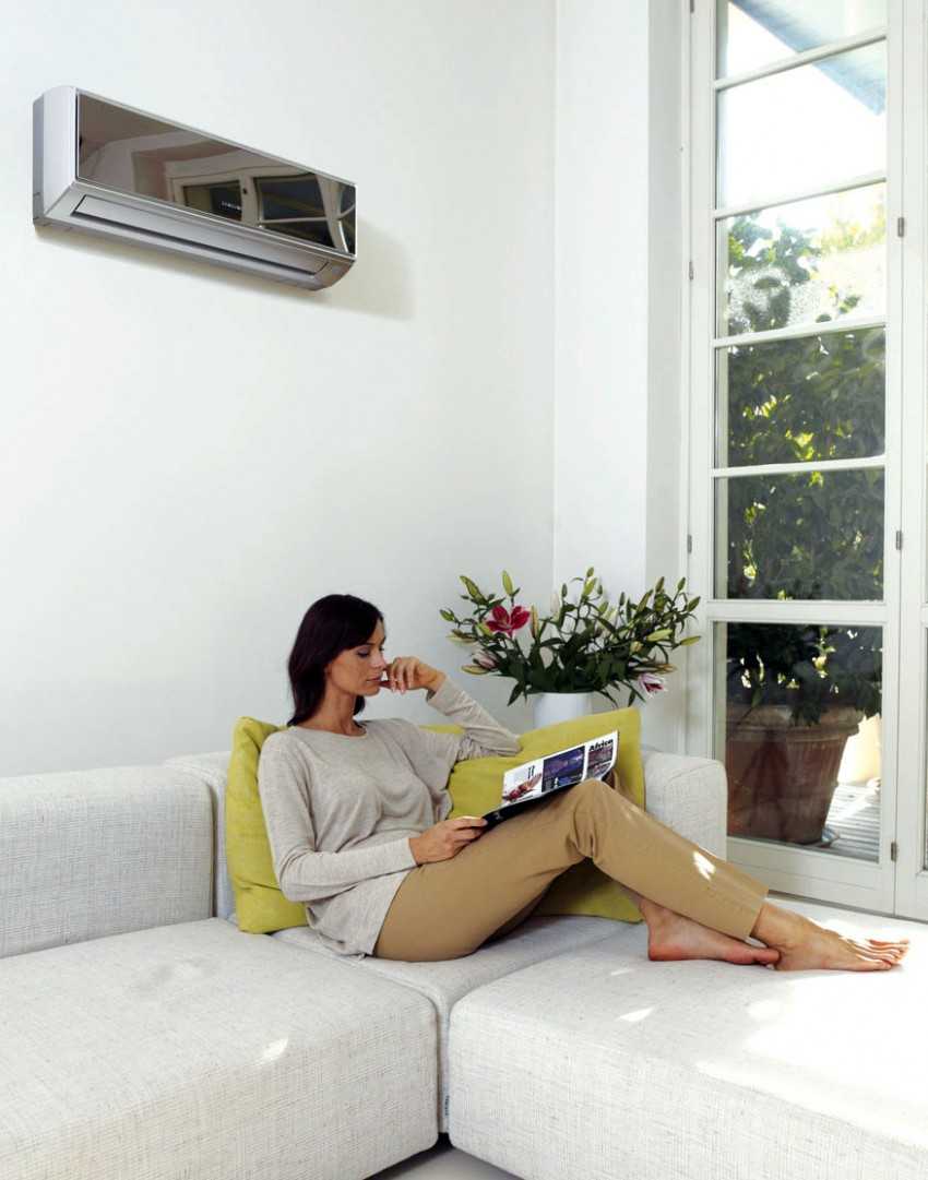 Совет! В комнате с диваном и телевизором кондиционер лучше поставить над диваном.