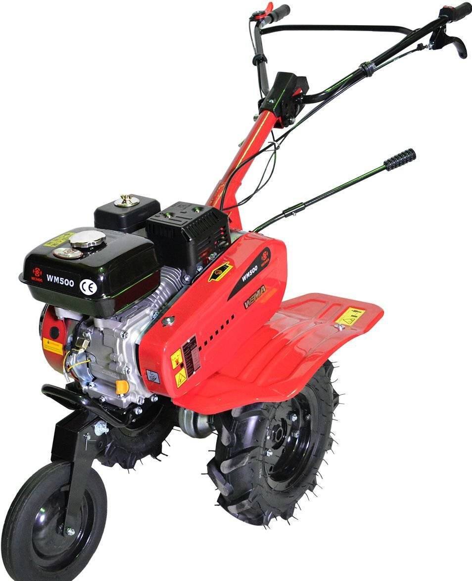 Модели оборудуют двигателями Honda, Briggs&Stratton и Subaru. Управление конструкцией очень удобное и простое. Руль можно регулировать по высоте. Переднее колесо сдвоено, чтобы легче было перемещать агрегат по почве, если поставлены фрезы.