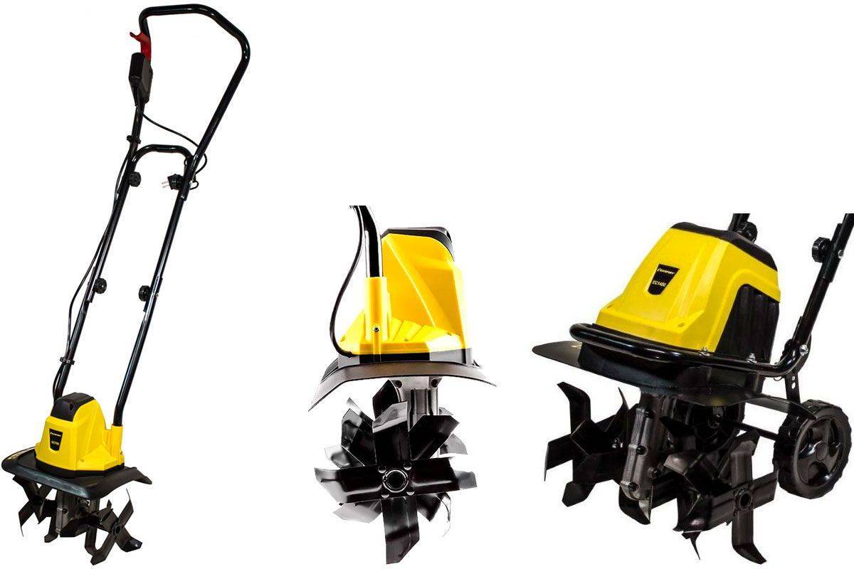 Единственная модель в нашем рейтинге от известного производителя CHAMPION с электромотором. Легковесный и сравнительно недорогой сетевой культиватор, оборудованный электродвигателем мощностью 1,4 кВт. Этого достаточно для передачи крутящего момента 6 фрезам. Мотор имеет двойную изоляцию обмотки, надежно защищен от перегрева и скачков напряжения в сети. Ширина вспашки составляет 400 мм, глубина — 210 мм. При этом масса устройства всего 11 кг. Источник питания — сеть переменного тока (230 В).