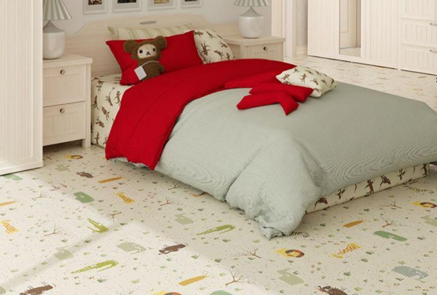 Для детской можно подобрать цветной ковролин, который будет украшен полями для игр или рисунками персонажей мультфильмов. Это интересное решение, которое порадует вашего ребенка.