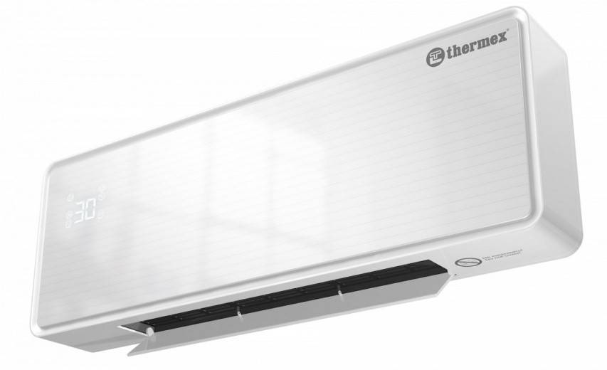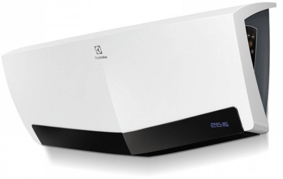 Для сравнения стоит рассмотреть вариант настенного тепловентилятора. Он дороже напольных аналогов, но и более функционален. Настенный керамический тепловентилятор с максимальной потребляемой мощностью 2000 Вт. Этот агрегат без труда обогреет помещение площадью до 25 кв.м. Тепловентилятор Electrolux имеет стильный дизайн и практически бесшумный с довольно обширным функционалом: поддержание постоянной температуры, таймер, дисплей, пульт ДУ. Монтируется на стену. Цена от 4946 руб.